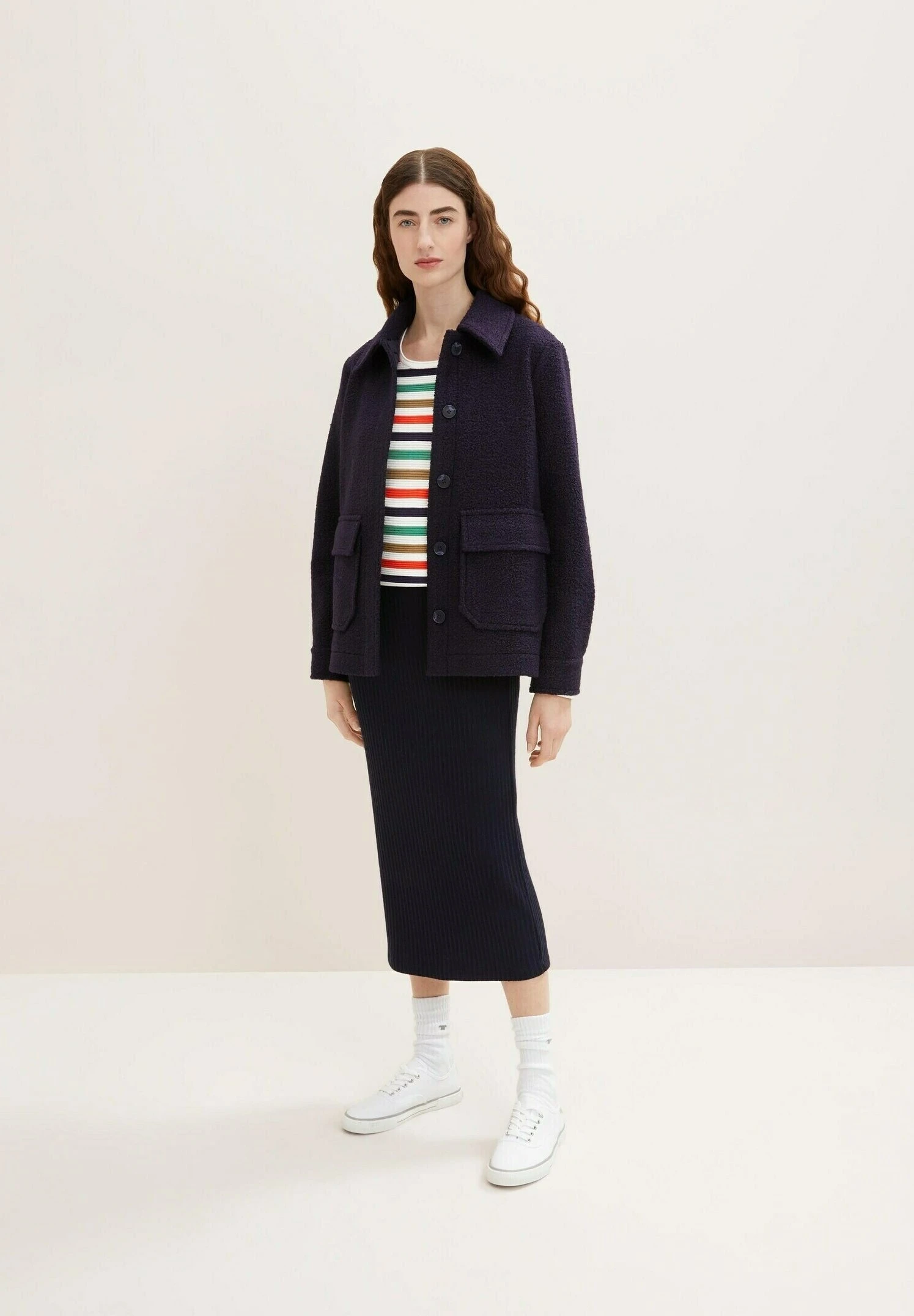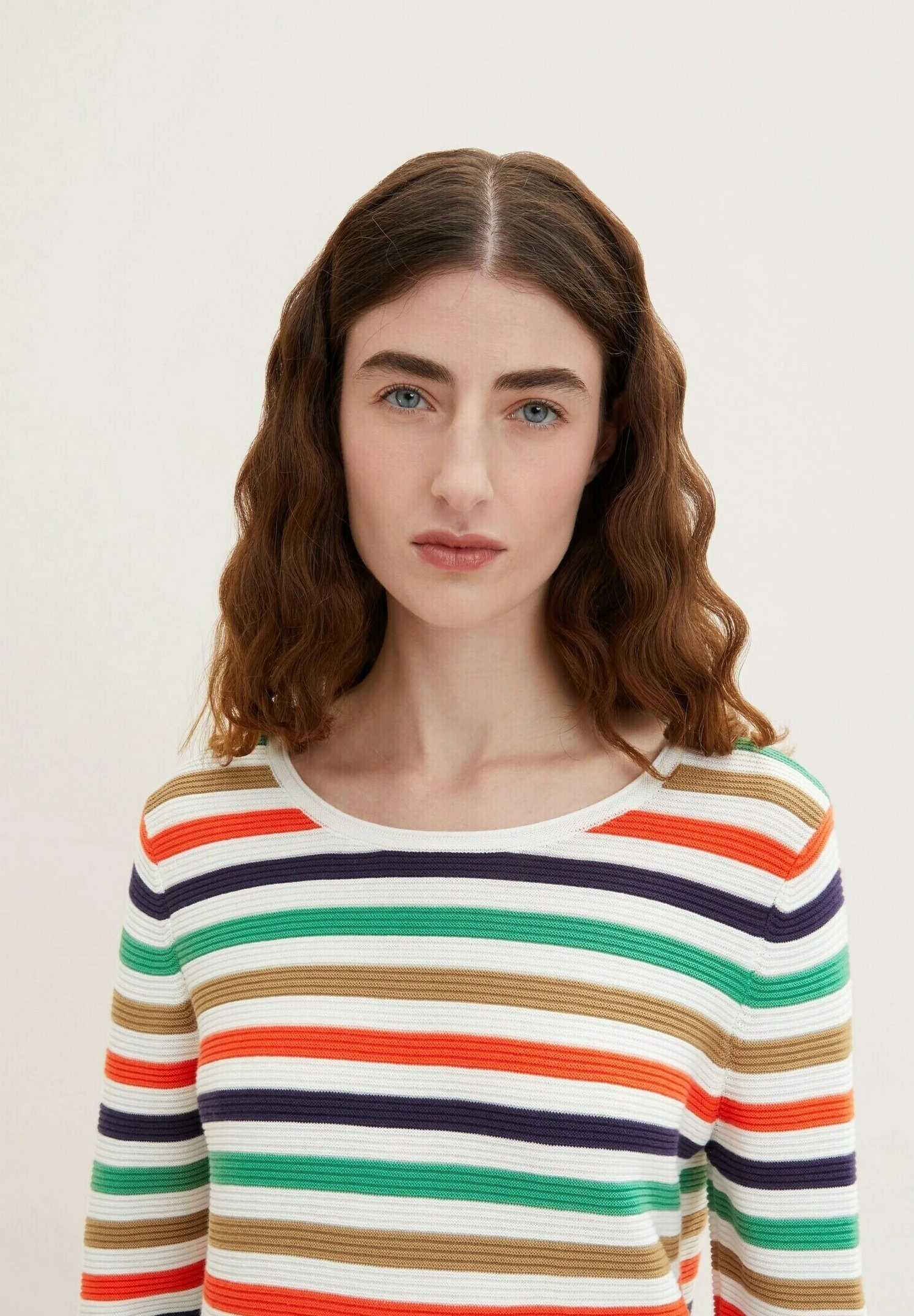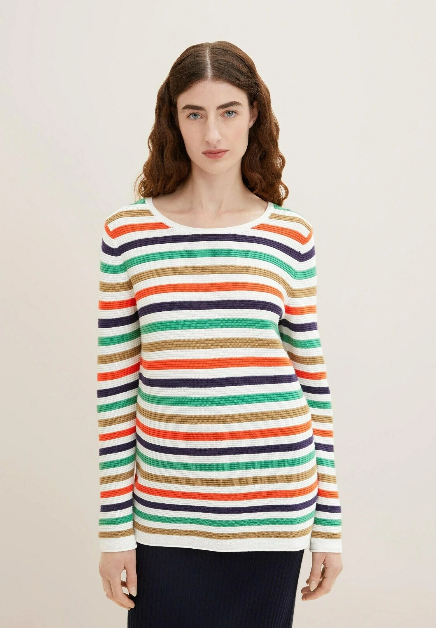 Tom Tailor Knit Jumper With Round NecklineMaglioneNavy Green Multicolor Stripe Donna Maglieria TO221I0IQ-K19