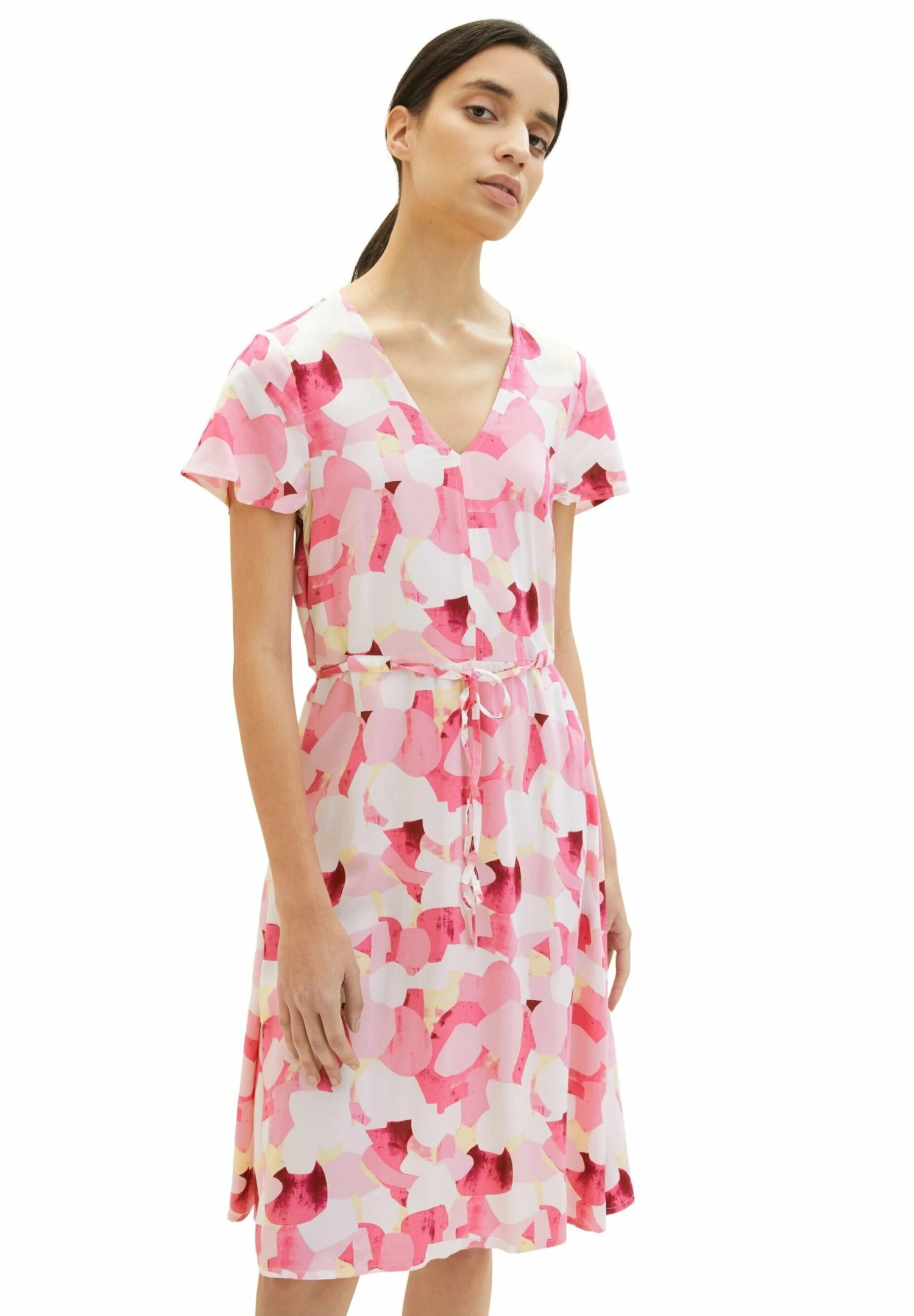 Tom Tailor Midi Mit Stoffgürtel – Vestito Estivo – Pink Shapes Design