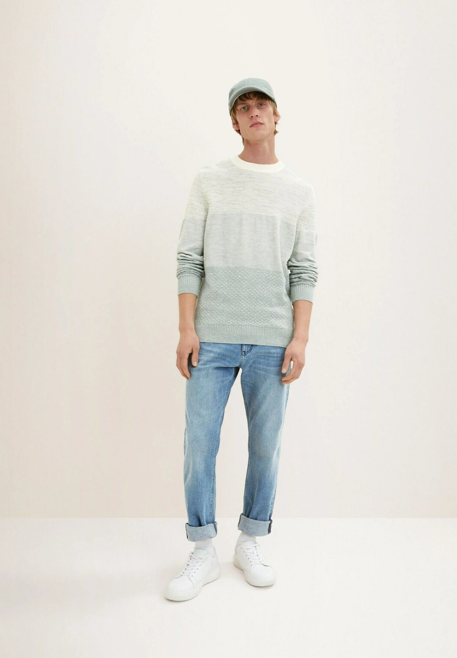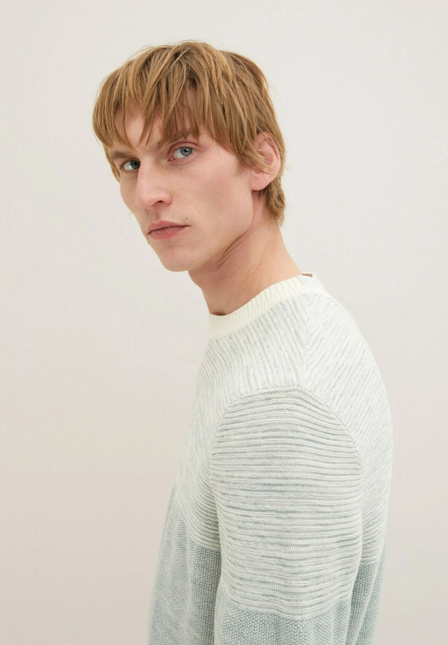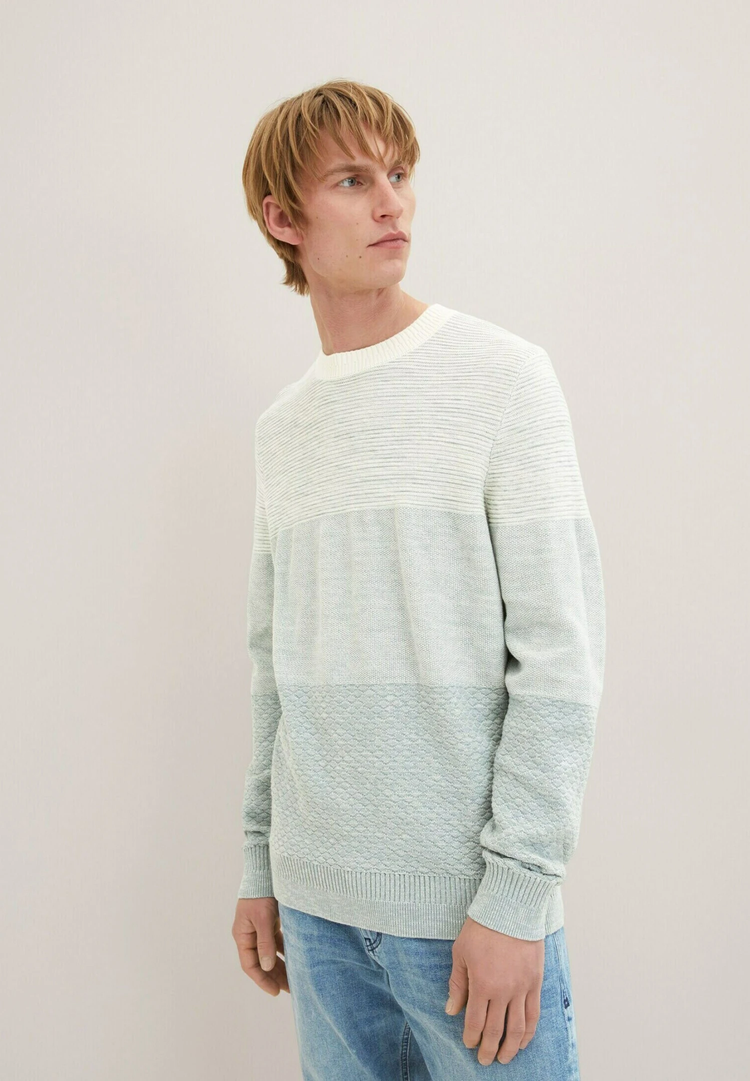 Tom Tailor Mit Struktur MaglioneIce Blue White Block Stripe Uomo Maglieria TO222Q0R7-K11