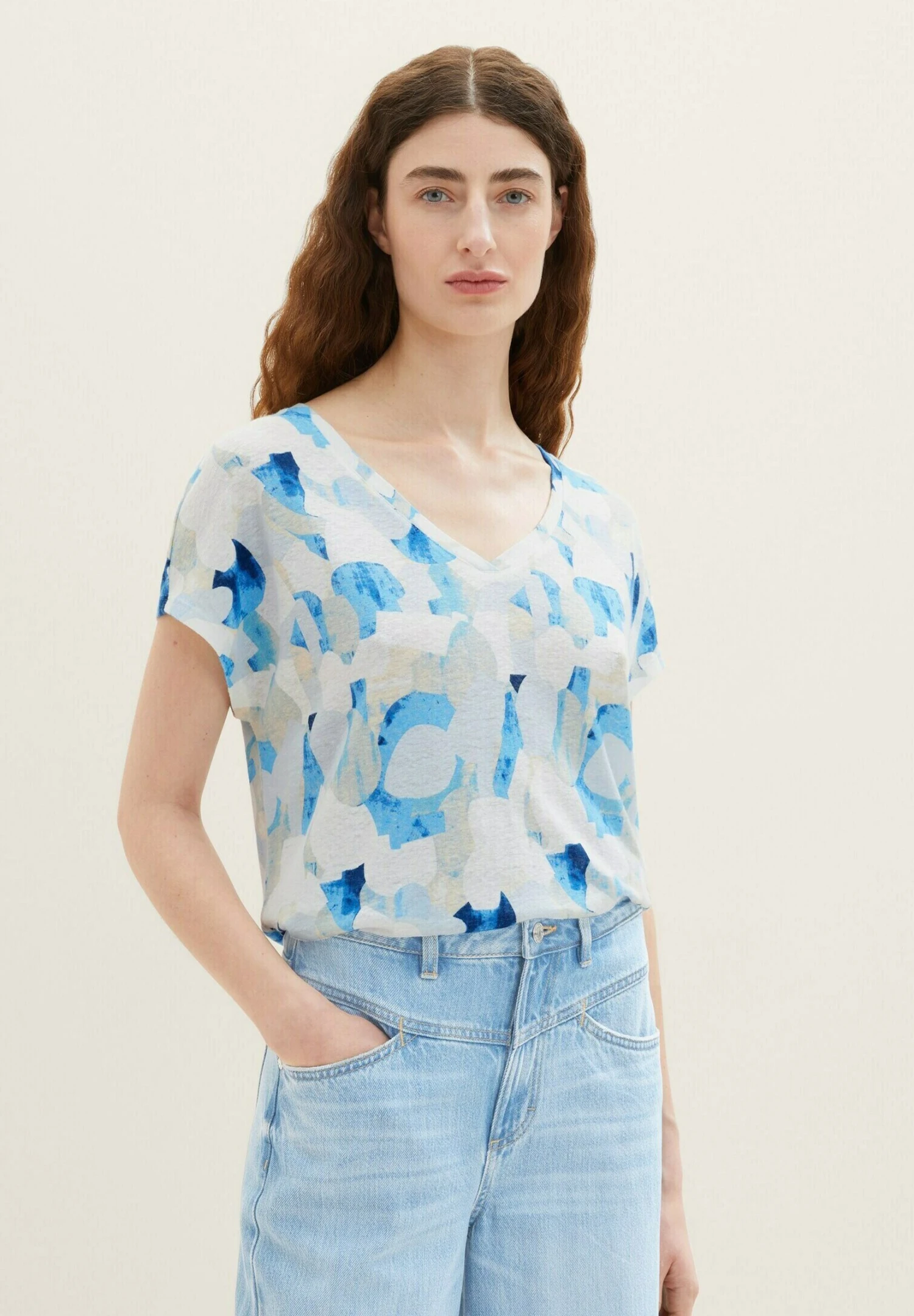 Tom Tailor Mit V AusschnittT-Shirt Con StampaBlue Shapes Design Donna T-shirt E Top TO221D1J3-K11